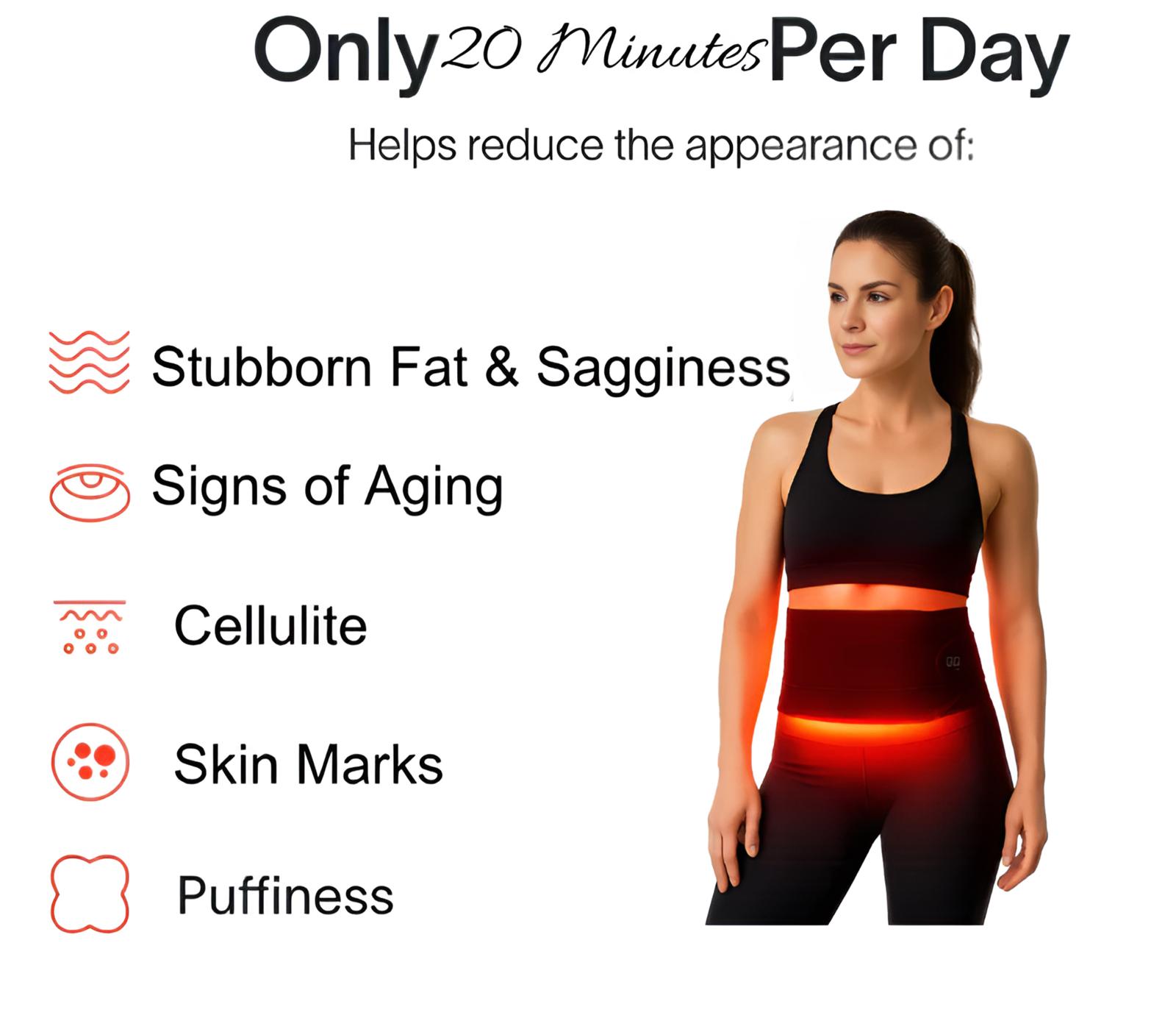 The Coreglow Waist Wrap is completely non-invasive, painless, and safe for daily use. Unlike surgery or harsh treatments, it uses gentle red light therapy that has been clinically studied for skin tightening and body sculpting. Most customers experience only positive effects — a firmer, smoother waistline and improved skin tone. No downtime, no irritation, just natural results.