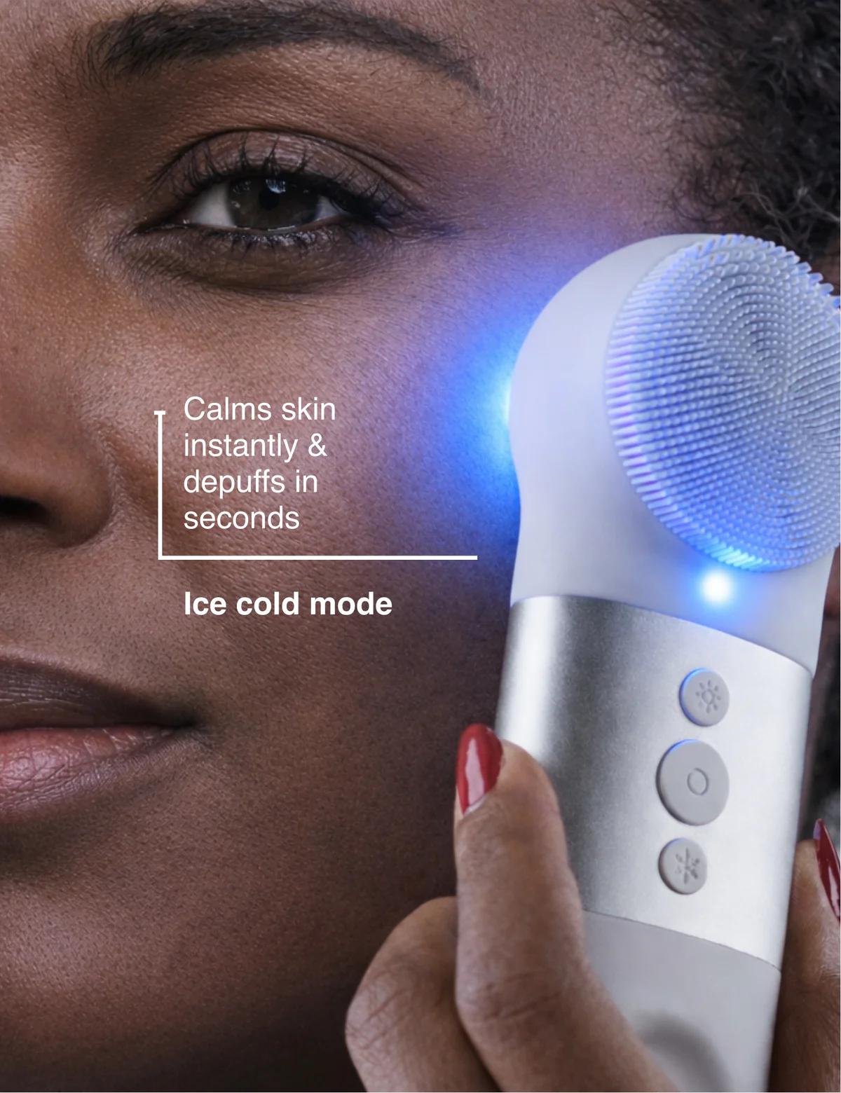 Step 3: (Optional) Switch to Blue Light + Cool Mode to soothe, depuff, and help lock in hydration.