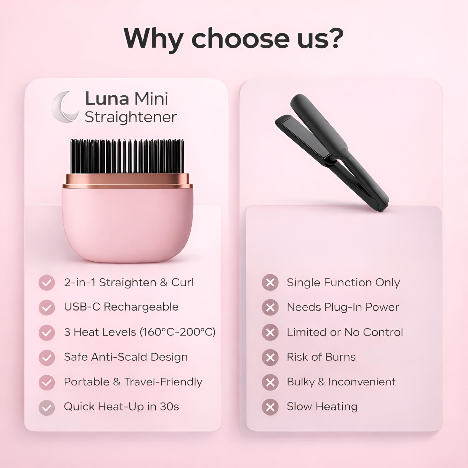 Luna heats up quickly so you can start styling in minutes — perfect for busy mornings or last-minute plans.