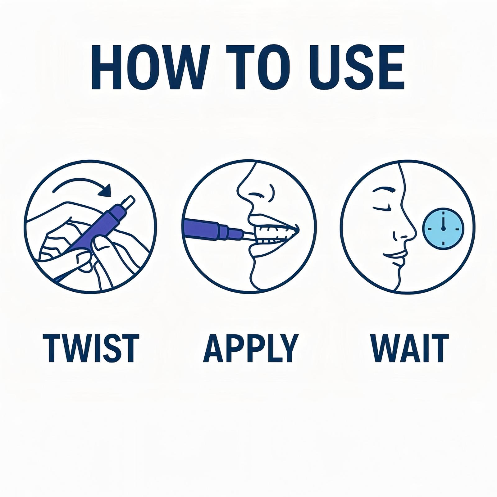 Apply the serum using the built-in precision brush to dry teeth. Leave on for 30 seconds and avoid eating or drinking for 15–30 minutes after. Use once or twice daily for optimal brightness.